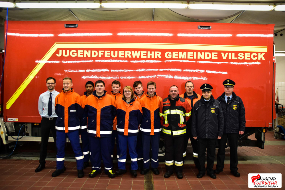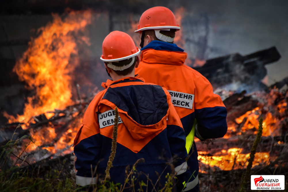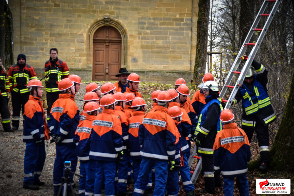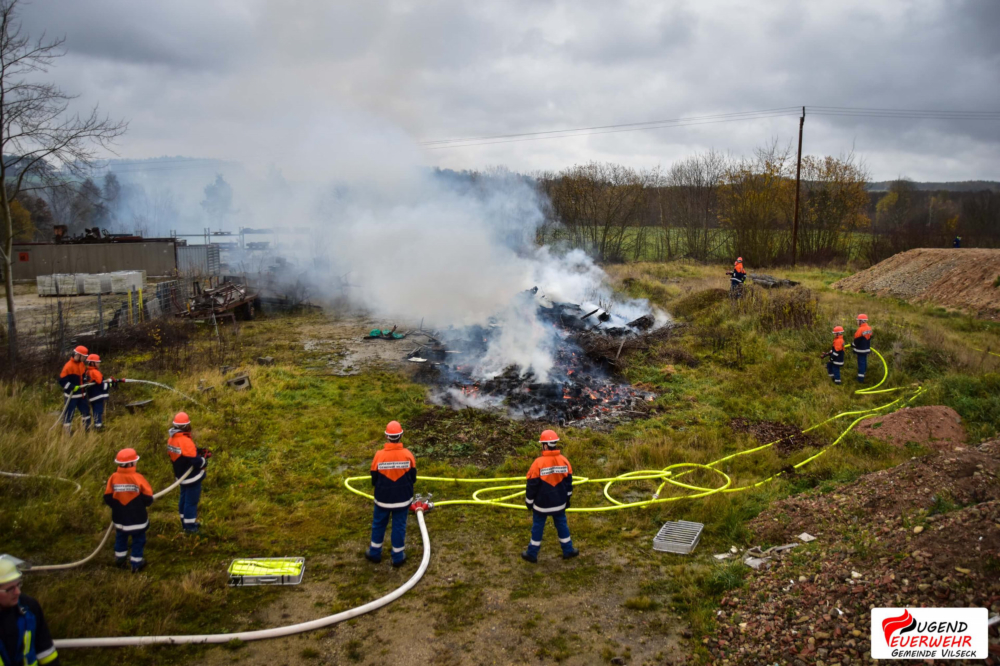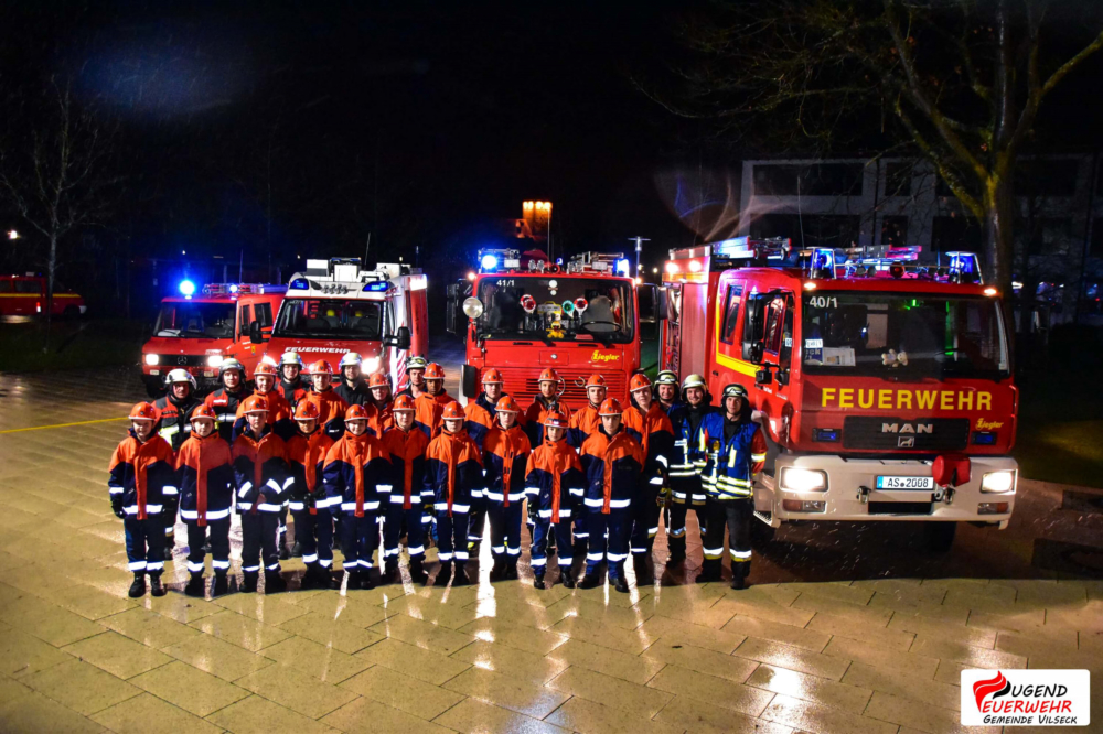 Am Samstag, den 11. November veranstaltete die Jugendfeuerwehr Gemeinde Vilseck ihren ersten Berufsfeuerwehrtag auf Gemeindeebene. Insgesamt 22 Jugendliche, sowie deren Ausbilder begannen pünktlich um 8 Uhr bei der „Berufsfeuerwehr der Gemeindejugend Vilseck“ ihren Dienst im Gerätehaus Vilseck. Nach einer kurzen Begrüßung durch Gemeindejugendwart Andreas Männer wurden die Jugendlichen auf die verschiedenen Fahrzeuge aufgeteilt und durften ihre Spinde beziehen. Um 9 Uhr startete die Abnahme der Jugendflamme Stufe 1 durch unsere Ausbilder.Diese wurde gegen 10 Uhr durch den ersten Einsatz unterbrochen. Nach ertönen des Alarmgongs und der Durchsage „Kleintierrettung in Axtheid-Berg“ eilten die Jugendlichen zu ihren Fahrzeugen und rückten mit dem HLF (Vilseck), dem LF 16 (Schlicht), MLF (Sorghof) und dem TSF (Schönlind, später Gressenwöhr) aus. Am Einsatzort wurde schnell die Lage erkundet und das hilflose Tier mit Hilfe einer Steckleiter gerettet. Zurück am Gerätehaus wurde nach einer kurzen Pause die Abnahme fortgeführt. Bei dem anschließenden gemeinsamen Essen fassen konnten sich die Jugendlichen für den weiteren Tag stärken. Nach der Mittagspause übten die Feuerwehranwärter gerade für die Bayrische Jugendspange, als erneut der Alarmgong mit der Durchsage „Brand einer Lagerhalle“ ertönte.Unverzüglich rückten die Nachwuchskräfte mit Blaulicht und Martinshorn zur Einsatzstelle aus. Schon bei der Anfahrt war der Einsatzort aufgrund der Rauchentwicklung und der Flammen ersichtlich. Vor Ort fanden die Feuerwehrler einen großen brennenden Holzhaufen vor. Sofort nach dem Eintreffen wurden durch den Befehl des Gruppenführers zwei B-Leitungen von einem Hydranten und einem offenen Gewässer zum HLF verlegt und mit der Brandbekämpfung begonnen. Um den Jugendlichen die verschiedenen Stationen und Aufgaben am Einsatzort zu veranschaulichen, wurde kurz „Wasser halt“ gegeben und die einzelnen Stationen gemeinsam erkundet.Nachdem das Feuer abgelöscht wurde, kehrten die Einsatzkräfte ins Gerätehaus zurück und stellten die Einsatzbereitschaft wieder her. An eine Pause war jedoch noch lange nicht zu denken, da die Abnahme der Bayerischen Jugendspange auf dem Programm stand. Nach Ende der Abnahme gab es für unsere Jugendlichen Abendessen. Doch auch diese Ruhe dauerte nicht lange an, da sie zu einer Nachsicht alarmiert wurden, welche sich als Fehlalarm herausstellte. Danach war Freizeit angesagt, in der sich die Jugendlichen mit Spielen, Kicker und vielen mehr beschäftigten.Gegen 22 Uhr wurden die Floriansjünger zu einer ausgelösten Brandmeldeanlage (BMA) zur Mittelschule Vilseck alarmiert. Die dortige Kulisse wurde für das obligatorisches Gruppenfoto genutzt, ehe die Nachtruhe einkehrte.Gegen 7:30 Uhr wurde diese durch den letzten Einsatz beendet. Hier waren die Jugendlichen noch einmal bei einer Verkehrsabsicherung gefordert. Das anschließend gemeinsame Frühstück beendete dann offiziell den Berufsfeuerwehrtag 2017.Ein großer Dank gilt allen Jugendwarten, Ausbildern, Maschinisten und Helfern, die uns so tatkräftig unterstützt haben, sowie unserem Webmaster Michael Lang, der unseren Berufsfeuerwehrtag mit Foto- und Videokamera begleitet hat.Das Team der „Jugendfeuerwehr Gemeinde Vilseck“ und alle Jugendlichen haben dazu beigetragen, dass dieser Tag so viel Spaß gemacht hat und ein voller Erfolg wurde! DANKE!Bildergalerie Berufsfeuerwehrtag 2017Autor: Daniel Ritz