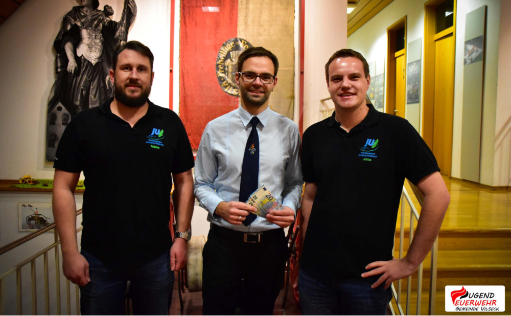 Am Samstag, den 11 November überreichten Jonas Dittrich und Tobias Meidinger von der Jugen Union Vilseck eine Spende in Höhe von 100 Euro, an den Gemeindejugendwart Andreas Männer, für die Mitarbeit der Jugendfeuerwehr Gemeinde Vilseck beim bayerisch politischen Abend. An dieser Stelle möchten wir uns herzlich bei der Jungen Union Vilseck für diese finanzielle Unterstützung bedanken.